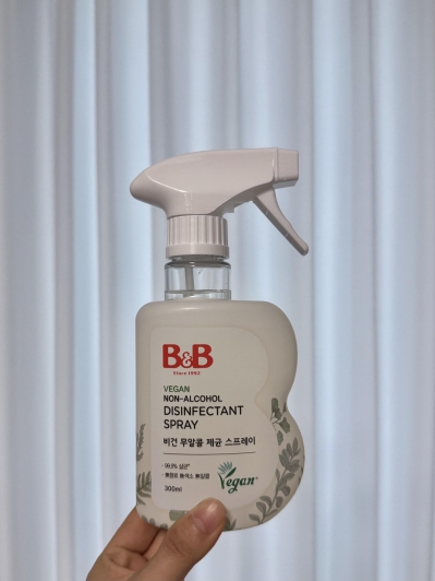 아이랑 반려동물을 함께 키우다 보니 집안 위생 관리에 항상 신경을 쓰는데, 그래서 선택한 게 비앤비 비건 무알콜 제균 스프레이예요. 알콜, 향료, 색소가 전혀 들어있지 않아서 아이 장난감이나 매트, 의류에도 안심하고 뿌릴 수 있고, 순수한 물에서 얻은 성분이라 자극 없이 소독된다는 점이 가장 마음에 들었어요.