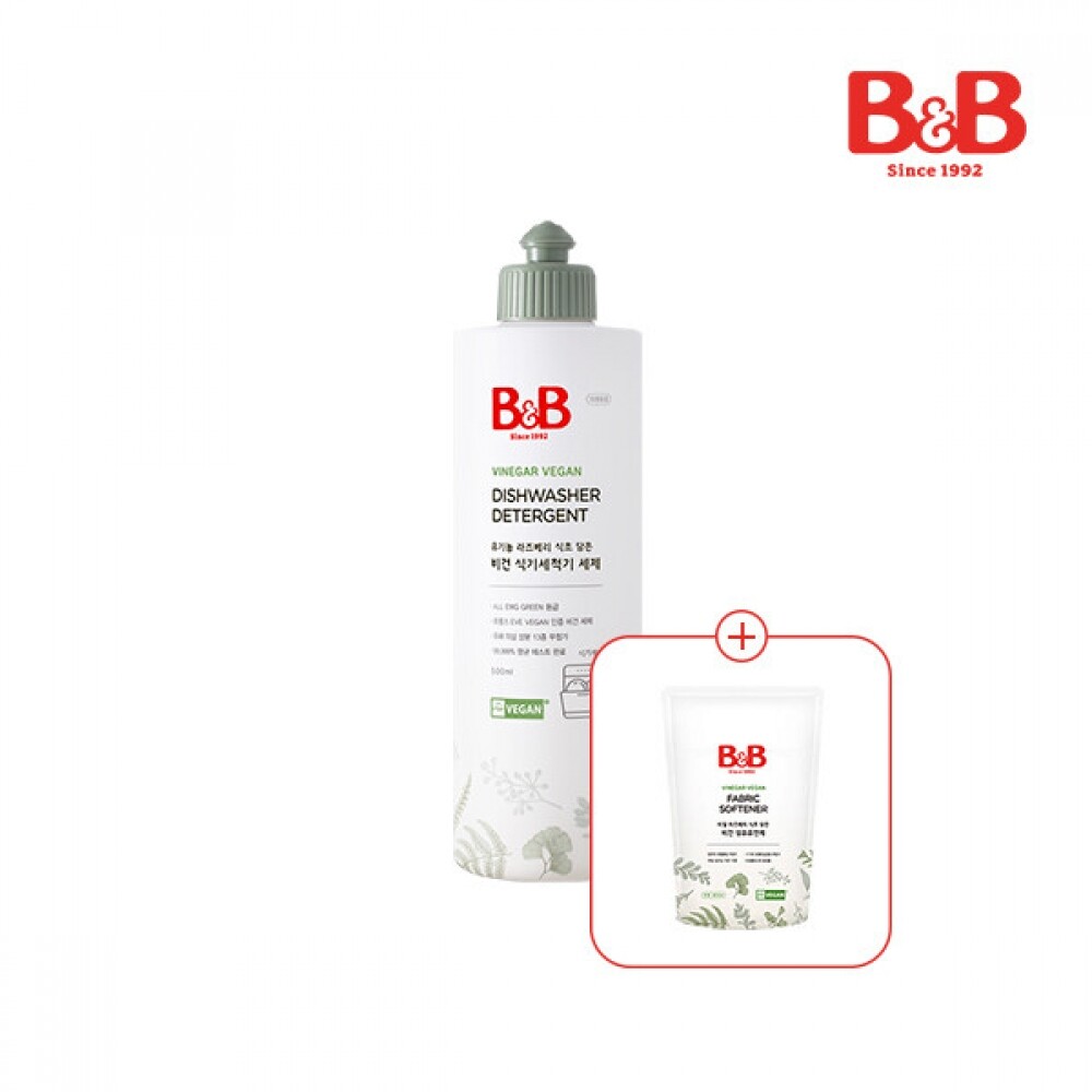 [800ml유연제증정] 비앤비 비건 식기세척기 세제 500ml(용기)