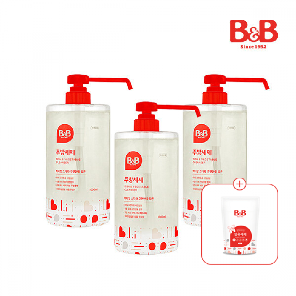 [800ml세제증정] 비앤비 주방세제 1000ml 용기형X3개입